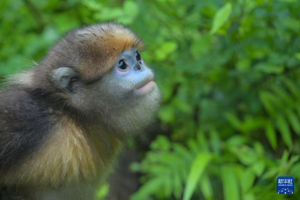 这是2025年5月28日在贵州梵净山国家级自然保护区黔金丝猴研究中心拍摄的黔金丝猴。新华社发(李鹤 摄)
