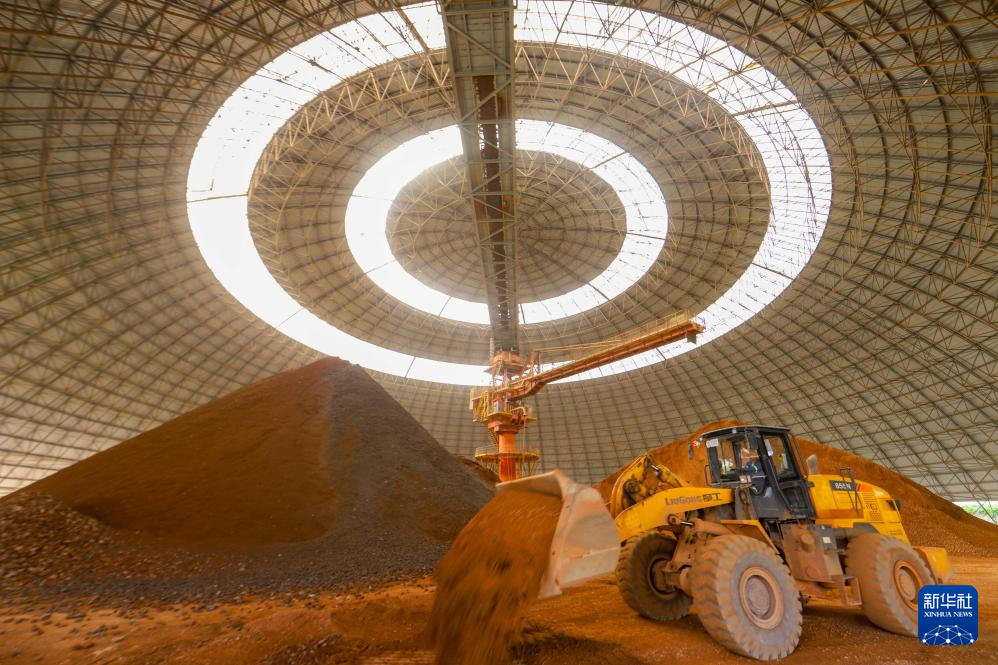 2025年7月2日,在贵州省遵义市务川仡佬族苗族自治县务正道煤电铝循环经济工业园区,工人驾驶机械转运材料。新华社发(袁福洪 摄)