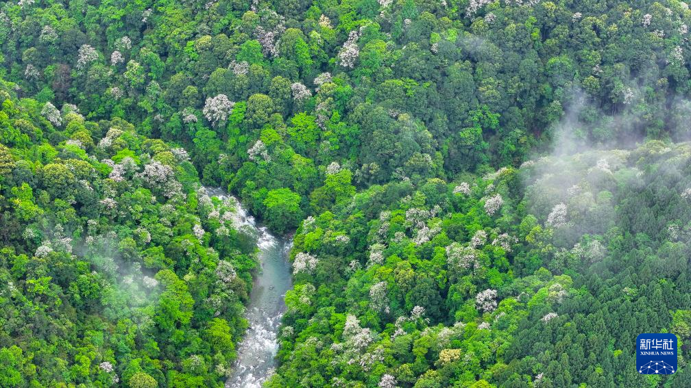 这是2025年4月22日在贵州梵净山国家级自然保护区拍摄的赤杨叶花海(无人机照片)。新华社发(李鹤 摄)