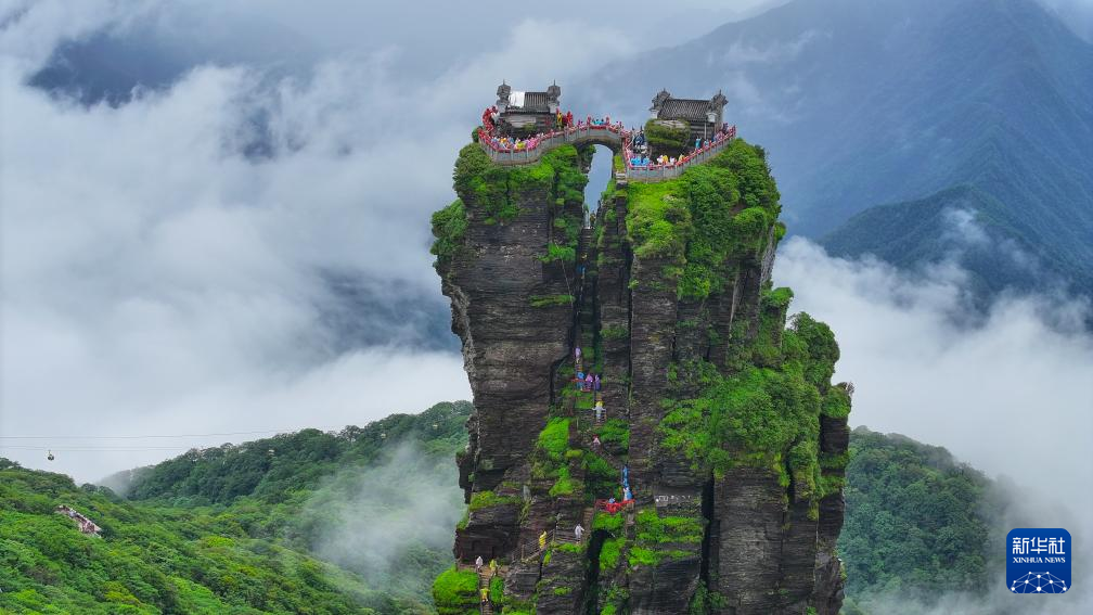 2025年6月26日,游客在世界自然遗产地梵净山景区游览(无人机照片)。新华社发(李鹤 摄)