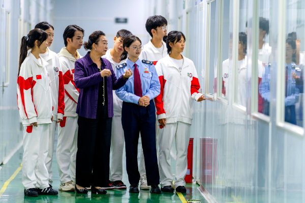 税务人员与学生一起听公司负责人介绍非遗“素辣椒”的生产工艺。(聂燕云 摄)