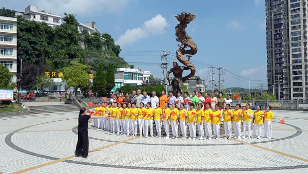 与此同时,在县城抗战文化广场,一场充满深情的抗战歌曲演唱活动正在举行。县老年大学的46名学员,手持鲜艳红旗,用激昂的歌声回溯那段艰苦卓绝的过往。学员们精神抖擞,歌声激昂,一首首经典抗战老歌在广场上空盘旋回荡。