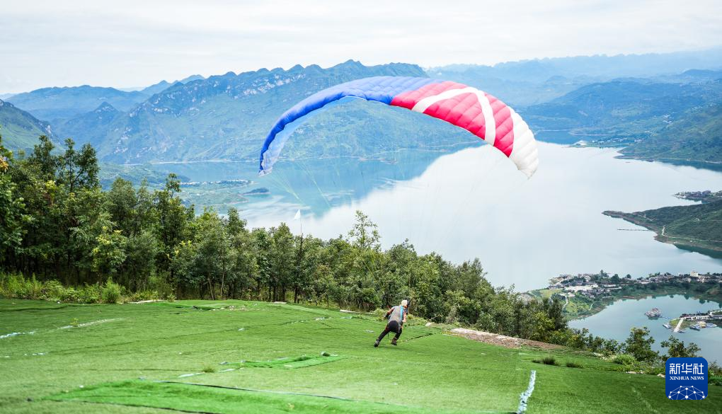 炎炎夏日,滑翔伞这一低空旅游项目成为了贵州省六盘水市众多游客的新选择。近年来,贵州省六盘水市六枝特区依托凉爽的气候资源和山地特色资源优势,积极打造牂牁江区域山地旅游升级版,体育产业融合助推旅游发展,进一步激发了山地体旅融合的消费活力。