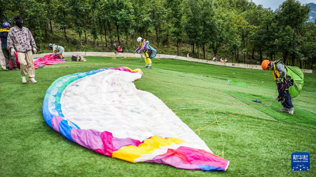 游客在六盘水市六枝特区牂牁江畔顺利降落(7月8日摄)。新华社记者 陶亮 摄