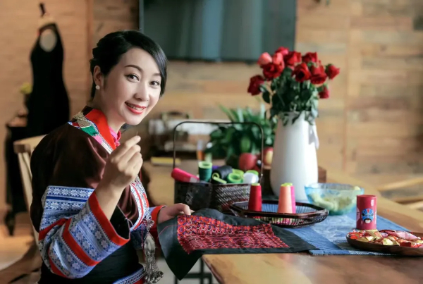 张兰对于苗绣的创新娓娓道来:“将苗绣图案运用到现代服装设计中,使传统苗绣与时尚潮流完美融合,既保留了苗绣的独特韵味,又满足了现代人的审美需求。我们以中国风为主线,旗袍为主打,专注定制20余年,通过全国各种类型的展会和舞台推广苗族挑花绣服饰文化,并借助互联网的优势,通过抖音、百度、小红书、快手等网络平台开展传统手工艺线上推广宣传,将贵州苗绣推向了全国乃至全世界,让更多的人了解和认识了这门古老的技艺。”