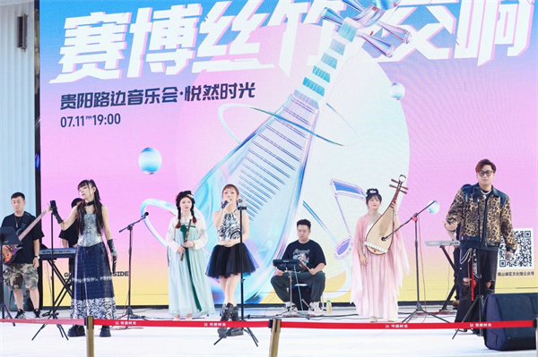 7月11日晚,贵阳路边音乐会·悦然时光——赛博丝竹交响音乐会在观山湖区悦然时光举行。这场打破传统壁垒的音乐盛宴,将传统国风乐曲与流行音乐完美融合,带领观众穿梭于历史与未来的音浪之间,掀起一场跨文化的视听狂欢。值得一提的是,这场音乐会还有数位来自欧洲的音乐人登台互动,带来中文歌曲表演及世界经典歌剧演绎。