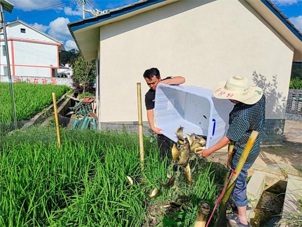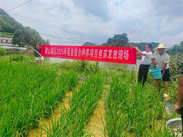 据悉,鱼苗分发前,合作社与农户们预先加强了田埂的稳固性、增设了防逃网设施、开挖了田间养殖沟。区农业水利服务中心的技术人员指出,鱼类在稻田中生长不仅有助于减少农药和化肥的使用量,降低土壤污染,还能通过鱼类的自然活动来除草、除虫、松土和增肥,从而改善稻田的生态环境,提高水稻的产量和品质。