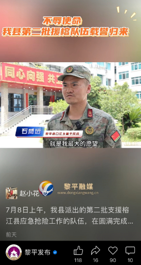 如今,褪去征尘的石威远回到家乡,但那份在洪灾一线淬炼的担当,已化作他生命中最鲜明的底色。这位老兵用行动证明:军装可以脱下,军人的初心永远闪亮;战场可以转换,为民的情怀始终滚烫。(罗洪燕、石雪莲、姚进忠)