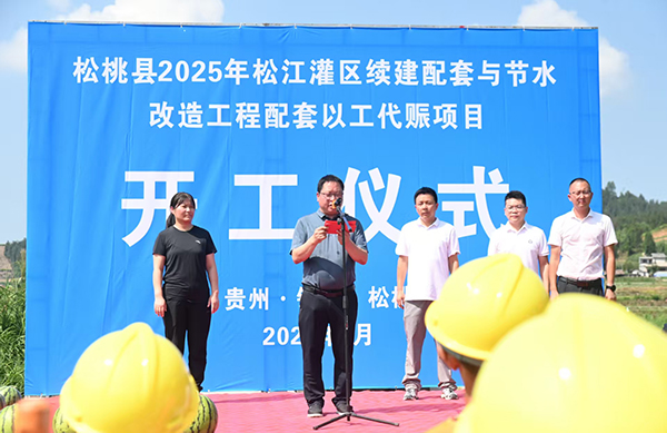 7月14日,松桃2025年松江灌区续建配套与节水改造工程配套以工代赈项目开工仪式在该县平头镇平头司社区举行。
