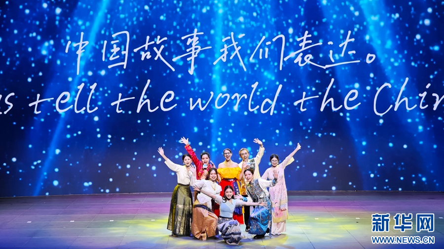 启动仪式现场,国际青年共同演唱中外友谊歌曲《世界一家》。新华网 周远钢 摄