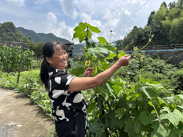 图为周月婵打理菜园子。