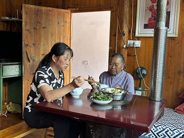 图为周月婵和婆婆吃饭。