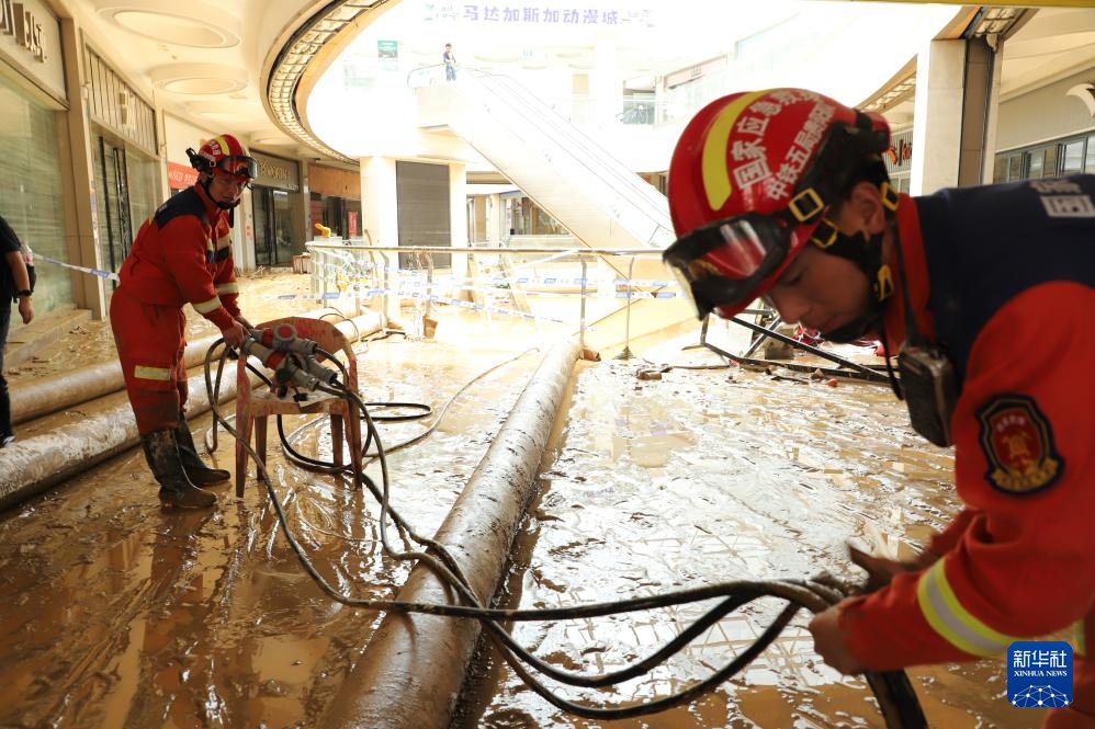 然而,6月28日,新一轮洪峰过境,洪水灌入商场。“只差几公分就抽干,转眼又被淹了。”王兴邦说,关键时刻,大家没有灰心和气馁。