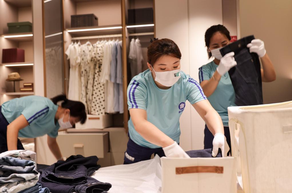 田维珊原本在当地一家国营企业上班,2019年,她为照顾家庭辞去工作,加入家政行业,探索新的职业路径。她发现,随着人们生活水平的提升,许多客户因屋内空间规划不合理、衣物收纳困难而发愁。