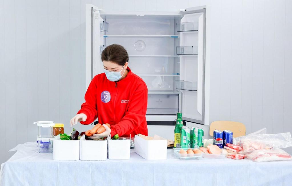 7月2日,田维珊(右一)给团队成员讲解收纳原则。