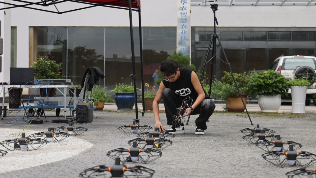 任锭哲是贵州数智文化科技有限公司的一名无人机群飞行规划员。大学毕业前,他就是一个航拍爱好者,并考取了无人机驾驶的相关证书。如今他将兴趣变成职业,手中的无人机不再是单纯记录美景的工具,而是结合更加专业的设备和技术,为人们带来一场场震撼的表演。