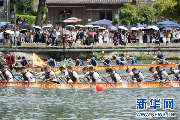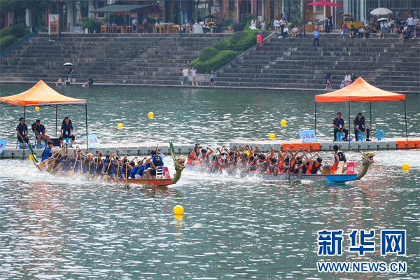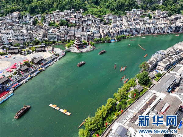 新华网贵阳7月20日电 㵲阳河畔山叠翠,竞渡龙舟闹古城。7月19日,“赛动黔景”2025年贵州省龙舟冠军赛在贵州省黔东南苗族侗族自治州镇远古城击鼓开桨,点燃了“赛动黔景”的夏日运动热潮。
