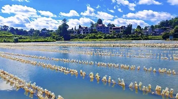 2023年,黄板镇以招商为笔,开拓产业新局,成功引进湖南常德珍珠蚌养殖大户,昔日200余亩山塘化身“珍珠港”。据了解,珍珠蚌养殖基地不仅养殖珍珠蚌,还科学配套养殖淡水鱼和蛋鸭,有效提升产业的经济效益,年收入突破300万元,撬动了高端养殖业转型,一池碧水映照出产业升级的粼粼波光。
