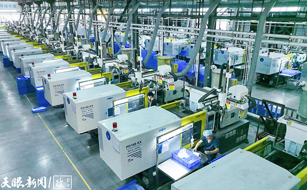 走进注塑车间,近百台全电动精密注塑机排列整齐,机械臂精准取件。得益于东西协作资金支持,企业投入超过4000万元引进自动化设备与MES生产管理系统。