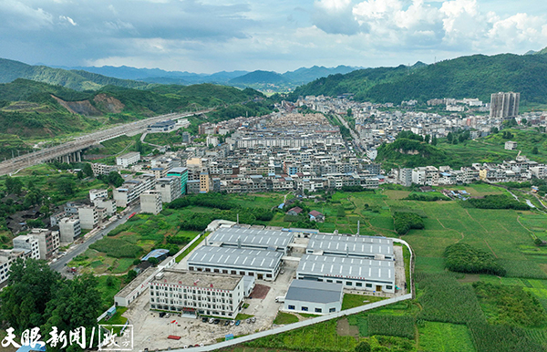 贵州乐嘉公司分厂孟溪镇强村富民工坊航拍图。