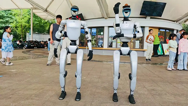 宇树G1系列机器人及Go2 pro机器狗已化身“山门舞者”静候来客——金属流线型机身在阳光下泛着冷冽又鲜活的科技光泽,随着动感旋律缓缓舒展机械关节,肢体精准卡点每段节拍,为即将开启山间旅程的游客送上第一份惊喜。
