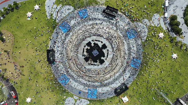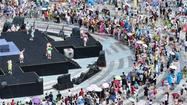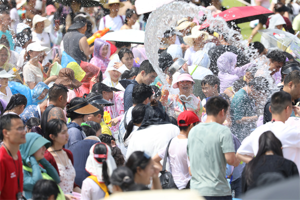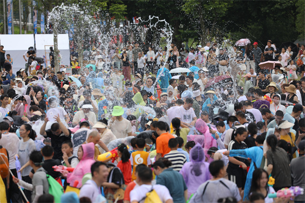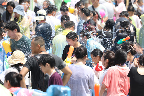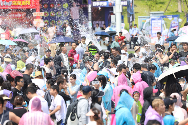 下午2点半,非遗德江水龙巡游震撼登场,为活动拉开了序幕。古老的水龙祈福仪式上,舞者身着民族服饰,伴随着铜鼓齐鸣,舞动间尽显民族风情,为这场泼水狂欢注入了浓厚的文化气息。随着水龙巡游的结束,广场上水花四溅,万人“水战”正式开启!观众们分为黄蓝两大阵营,水瓢、水枪齐上阵,欢声笑语此起彼伏。无论是大人还是孩子,都在这场“水战”中尽情释放热情,感受夏日的清凉与激情。(张奕妍 陈杨)