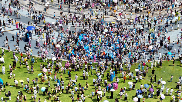 7月19日,观山湖公园民族大联欢广场上演了一场盛大的“水战”狂欢。