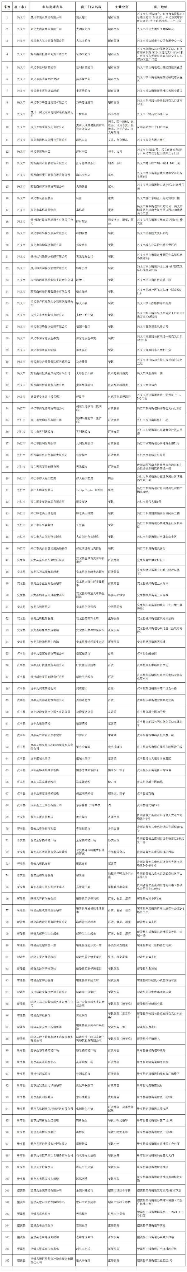 2025年“多彩贵州欢乐购·畅享阳光黔西南”惠民消费券发放活动参与商户名单