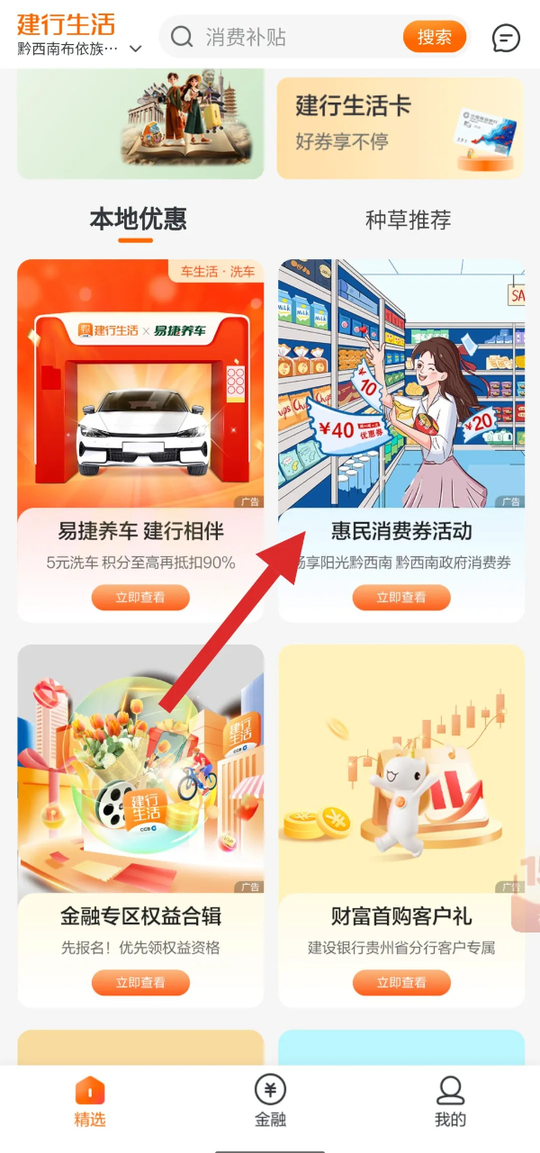 4.首页进入“本地优惠”点击“惠民消费券活动”→