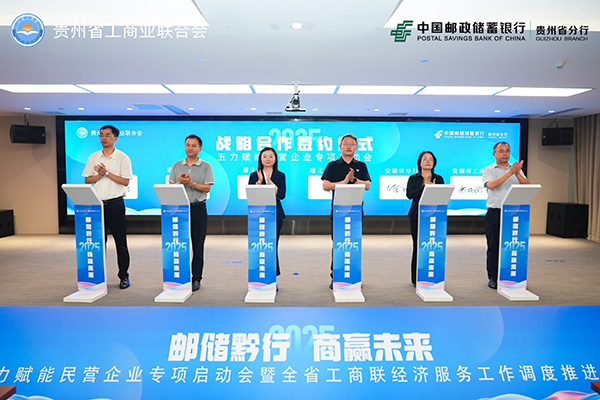 为助力民营企业高质量发展,7月4日上午,贵州省工商业联合会携手邮储银行贵州省分行联合开展“邮储黔行•商赢未来 五力赋能民营企业专项启动会”活动。