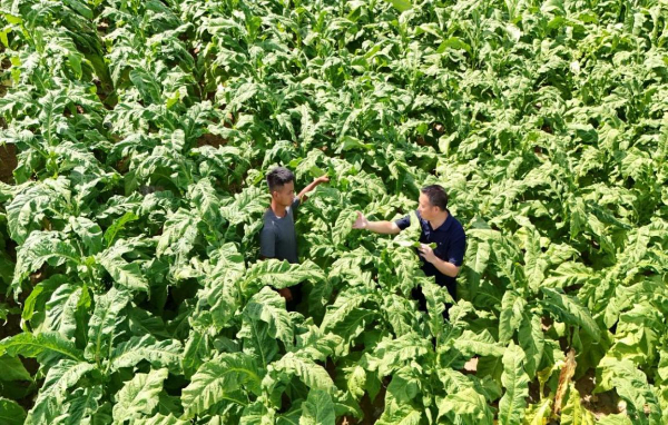 “起初家人不理解,觉得大学生回来种地没面子。”覃江飞坦言:“但农民合作社和烟站给了我很大支持,手把手教技术,还鼓励我大胆干。”从育苗移栽到田间管理再到成熟采收烘烤,覃江飞跟着烟站的技术员和老烟农们一点点学,一点点摸索,逐渐成长为懂技术、能吃苦的新农人。如今,他不仅自己种烟年收入远超在外打工,还成了村里的技术小顾问,带动周边七八户村民一起科学种烟,共同增收。“在家门口,既能赚钱养家,又能照顾老小,还能为家乡做点事,这种成就感是城里给不了的。”覃江飞黝黑的脸上洋溢着满足的笑容。