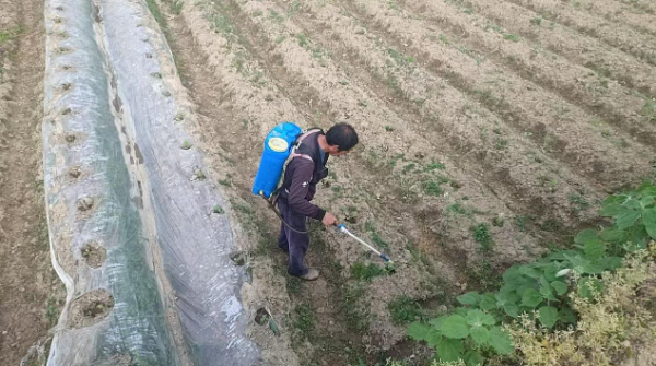 图为陈兴其正在施肥