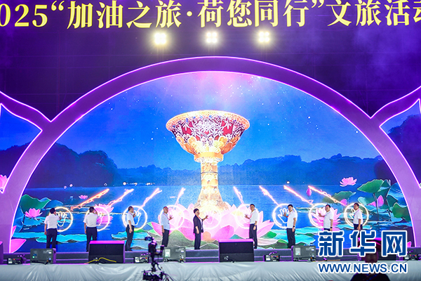 新华网贵阳7月26日电(刘昌馀)25日晚,安龙县2025“加油之旅·荷您同行”文旅活动在招堤景区开幕,活动以招堤荷花为媒、以加油文化为魂、以文化旅游为载体,展现“加油之城·美美安龙”的独特魅力。