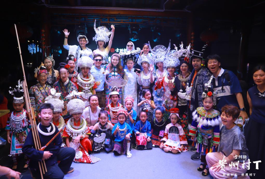 7月5日晚,多国青年在贵州省凯里市参加贵州“村T”走秀。(受访者供图)