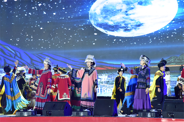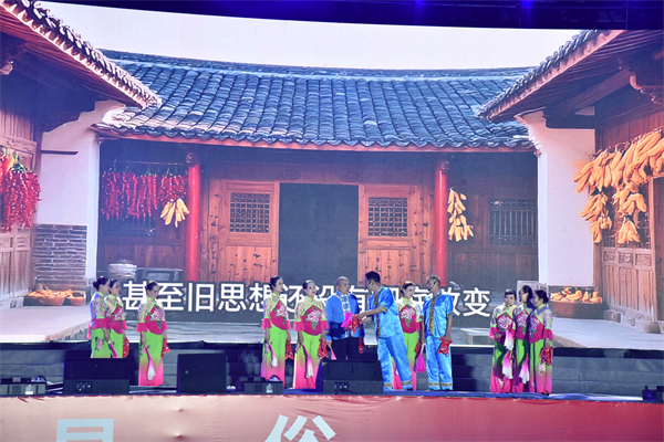 19时30分,以“文明之火生生不息”为主线惠民演出在开场舞《文明新风吹苗寨》中拉开帷幕,舞者们身着绚丽多彩的民族服饰,用灵动的舞姿展现新时代文明苗寨的风貌。演出紧扣移风易俗主题,节目形式丰富多样。舞蹈《画里乡田》以灵动舞姿描绘乡村移风易俗后的崭新风貌;音乐《和·苗》用美妙音符展现民族和谐共生的美好画面;音乐快板《移风易俗谱新篇》用明快的节奏和朗朗上口的语言,唱出陈规陋习破除后的新变化新气象。
