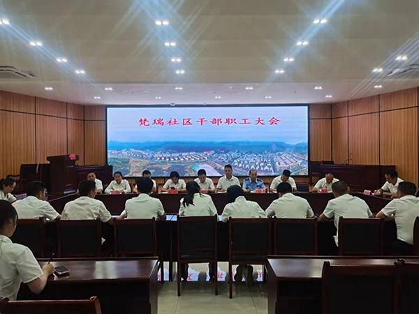 图为梵瑞社区召开干部职工大会部署工作。