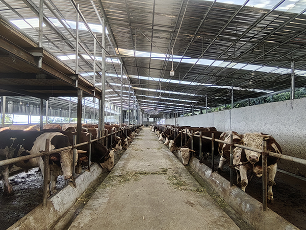 在肉牛养殖场建立初期,胡天云就提出构建“养殖场+处理中心+种植基地”的闭环系统。为消纳肉牛养殖粪污,养殖场建立了污水处理三级沉降池和微生物干粉协同氧发酵池,对牛场粪污进行无害化处理,实现粪肥还土还田。既可解决农业生产中废弃物处置问题,也可以增加农田土壤有机质含量,保证了土壤的肥力,降低了化学肥料的投入,为粮食单产不断提高提供了地力保障。同时,肥沃的土壤生产出更优质的青饲料和农作物,保障了养殖场肉牛的品质和产量。胡天云介绍,从去年6月份至今,已出栏肉牛60余头,产值130多万元;稻谷今年预计稳产18.3万元,加上玉米及少量套种大豆,全年收入初步预计达240万左右。饲料和肥料这两块累计节约成本达120余万元。