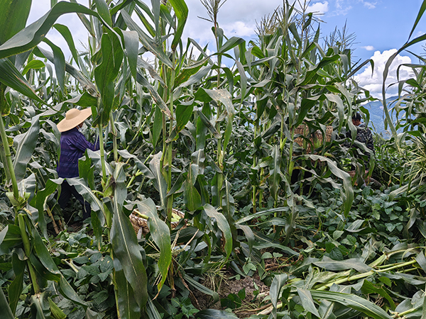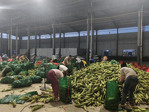 7月下旬,胡天云玉米基地里首批100亩的鲜食玉米进入采收期,趁着天气晴好,他请了10几个工人,帮忙抢收。几个小时的时间,玉米便装满了一大卡车,随即运往县城玉米批发集散市场出售,经过分拣和加工,被统一销售到大湾区和珠三角地区。