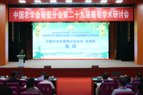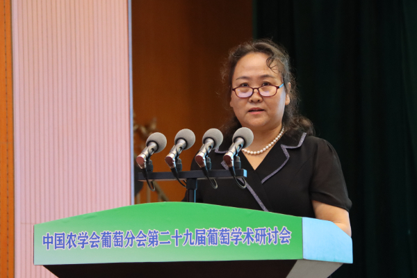 中央科技特派团葡萄产业组组长、国家葡萄产业技术体系岗位专家田淑芬出席开幕式并讲话。她说,本届研讨会将围绕智慧化现代农业发展、葡萄新品种选育、安全优质栽培技术、病虫害绿色防控、采后加工、产销与品牌建设、三产融合与乡村振兴等议题展开深入交流与现场观摩,希望与会代表积极分享最新研究成果,群策群力勇于破解产业瓶颈问题,探索葡萄产业高质量发展的新路径,为农民增收致富、产业增效贡献智慧与力量。