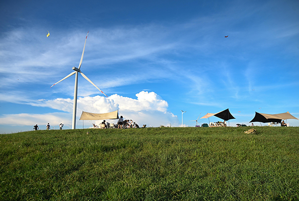 草海没有城市的喧嚣,只有风与草的呢喃!天际音乐会的舞台背景,是伸展的绿意、旋转的电力“风车”、棉花般的云彩,不远处还有露营地,传递人与自然的和谐!