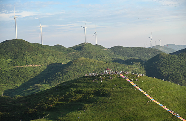 20度的气温,空气弥漫着青草的芳香,发电站“大风车”悠悠转动,棉花般的云彩在天际舒展……7月26日,松桃苗族自治县盘石镇黔东草海,“且听风箫·松桃村晚进黔东草海天际音乐会”在醉人美景里唱响。