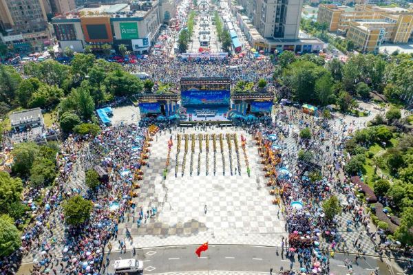 文艺演出中,科技与文化碰撞出震撼火花。千余架无人机以“中国天眼”为背景,在夜空勾勒出璀璨星空、翱翔巨龙、神秘宇宙符号等奇幻造型,“科技+文化”的视觉奇观惊艳全场,完美融合平塘的天文元素与民族底蕴。民族大踩堂与现代艺术同台亮相,为观众献上沉浸式视听盛宴;千人广场舞展演上,不同年龄段的舞者踏着节拍翩翩起舞,展现平塘人民积极向上的精神风貌;水龙之夜嘉年华的篝火旁,游客们手拉手载歌载舞,浓郁的民族风情浸润人心。