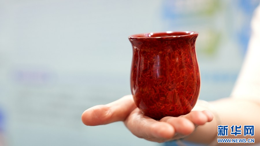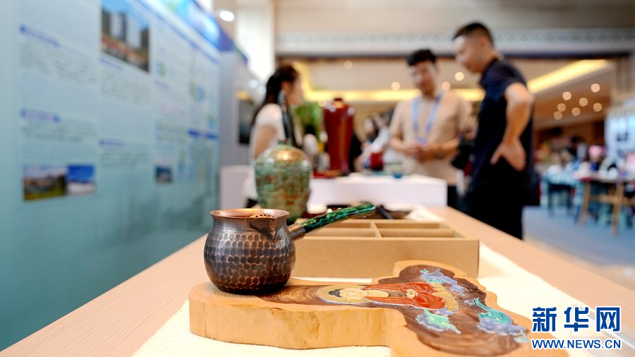 参会代表了解漆艺手工艺品。新华网 周远钢 摄