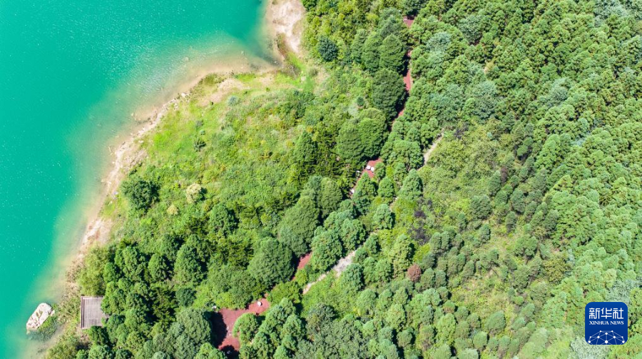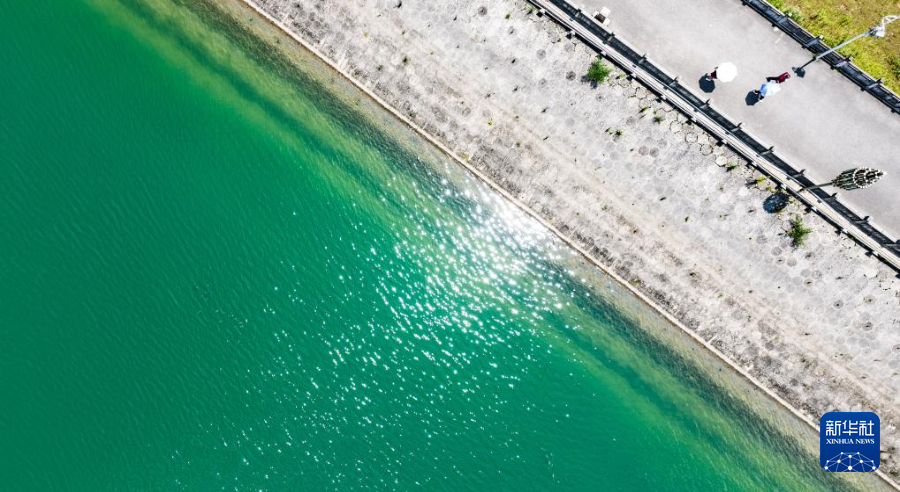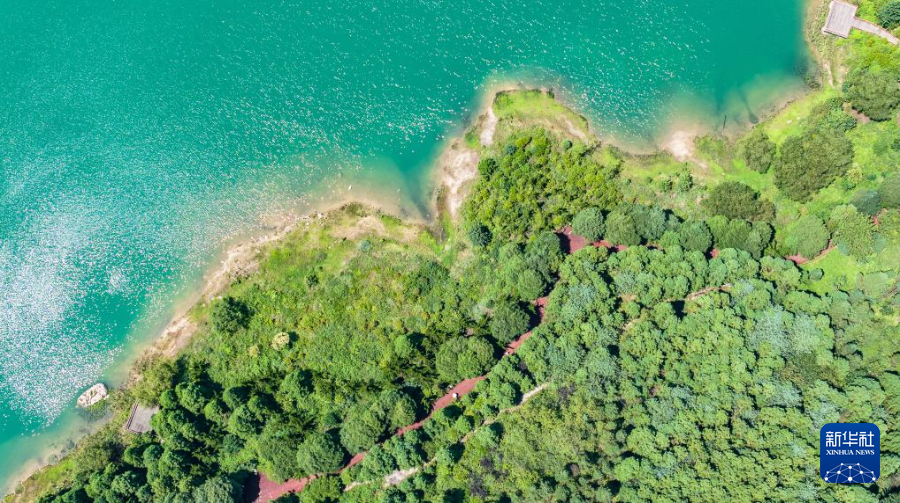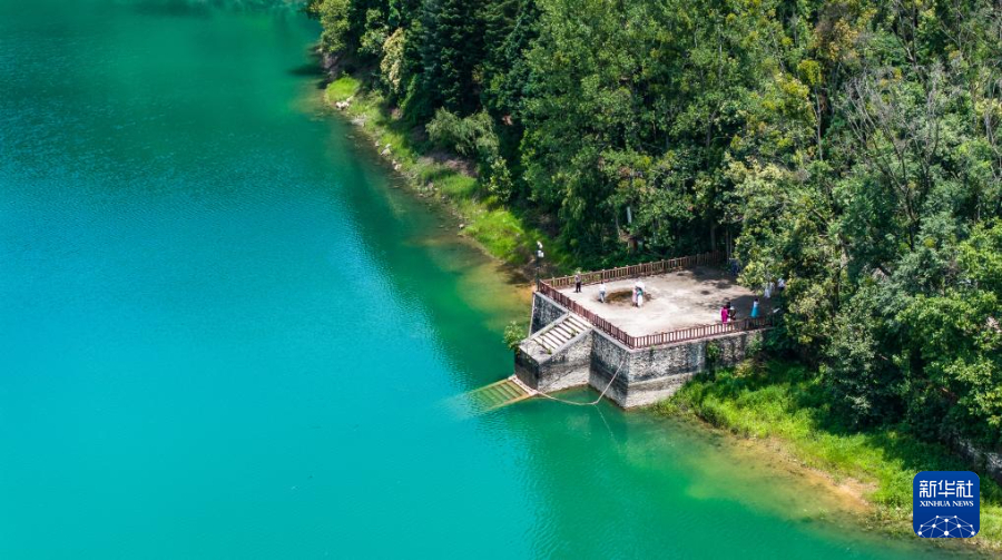 7月30日,游客在瑶池公园栈道上漫步(无人机照片)。新华社记者 陶亮 摄