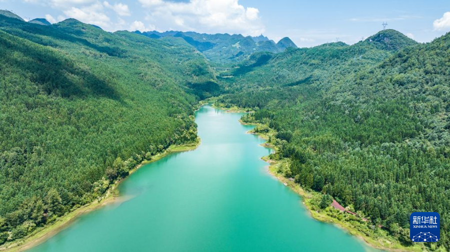这是7月30日拍摄的六盘水市钟山区瑶池公园风光(无人机照片)。新华社记者 陶亮 摄
