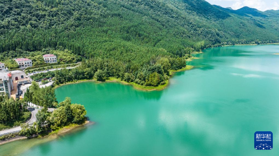 7月30日,游客在瑶池公园内漫步游玩(无人机照片)。新华社记者 陶亮 摄