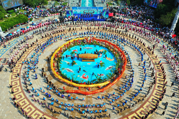 剑河县2025年“六月六”仰阿莎文化节万人水鼓舞现场。(潘文 摄)