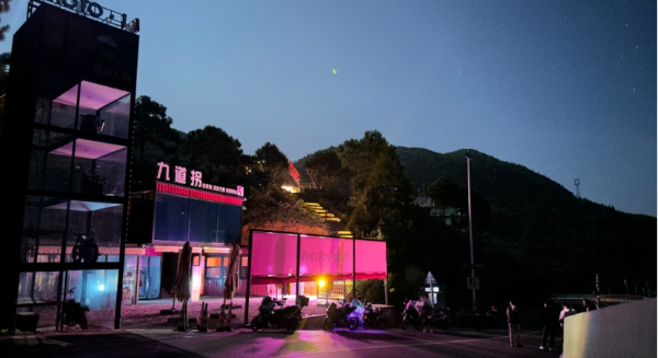 沿着高坡骑龙大道的粉色公路蜿蜒而上,当引擎声在“九道拐”的发卡弯达到高潮,霞客驿站的复古三轮机车招牌便出现在视野中。这里就是是摩旅圈在花溪的“秘密坐标”,更是将山野与机车完美融合的空间实验。