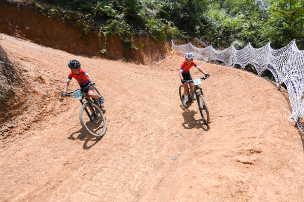 自行车选手在山地自行车竞技组参加比赛。(陈孝新 摄)