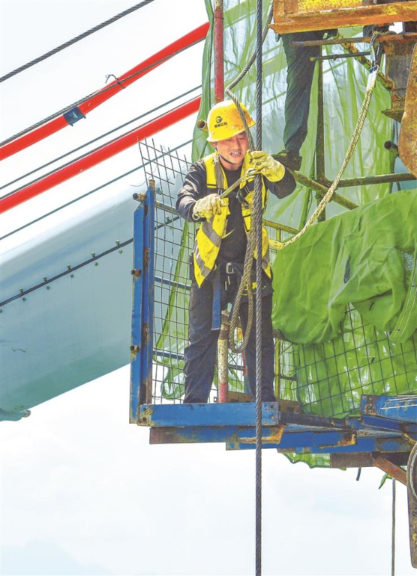 悬挂在大桥南岸6号主塔数百米高空的涂装施工员徐伟,身系双保险绳为塔身涂刷。每一个动作都要做到心如止水、手稳如磐。林伟负责观光廊道、竞速跑道、观景蹦极平台等多项桥体桥旅融合设施施工。游客眼中肾上腺素飙升的极限乐园,在他手中却是实打实需要精确到毫米级的“绣花功夫”。